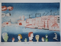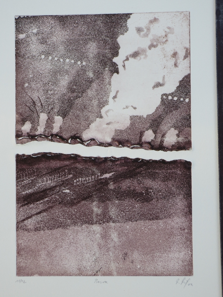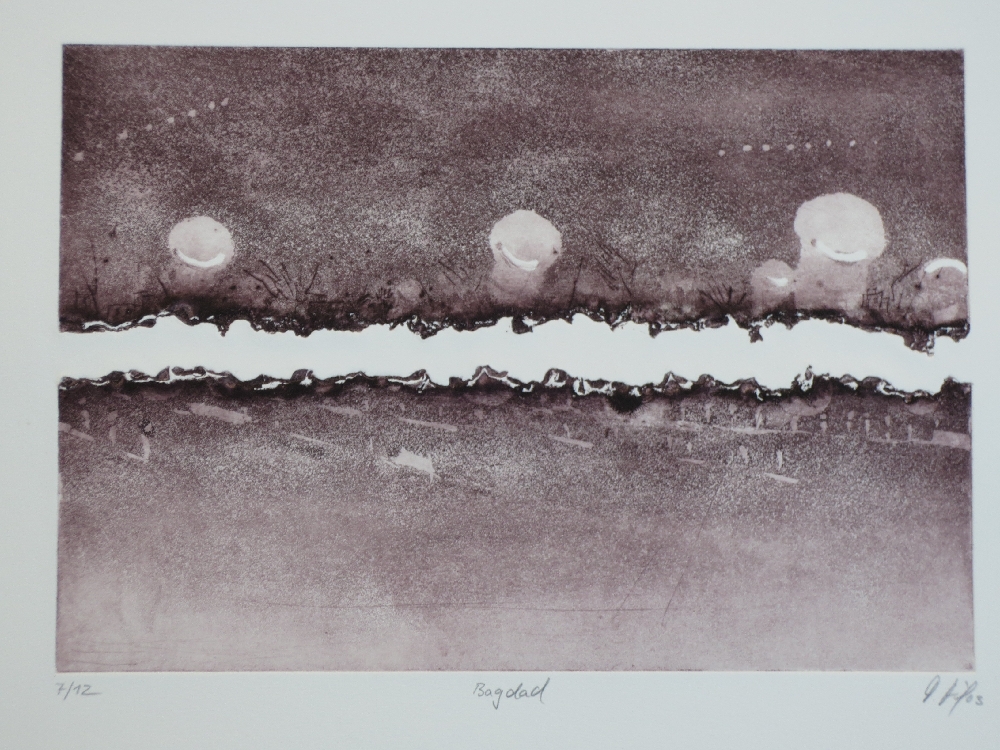 Litfass, Acryl (57 x 82 cm)Guitarren, Acryl (57 x 82 cm)Furios, Radierung (24,5 x 33 cm) Kaltnadel, AquatintaTierspiegel, Holzschnitt (26 x 27 cm)Blauland, Radierung (21 x 7,5 cm) Strichätzung, AquatintaHieroglyphen III, Lithographie (37 x 26 cm) Kopenhagen-Zyklus (Radierungen, 2010) Kopenhagen Dächer Kopenhagen Hafen I Kopenhagen Hafen II Kopenhagen Hafen III Kopenhagen Hafen IV Radierzyklus Irakkrieg (2003) Basra Kirkuk Mosul Nasiriyah Bagdad